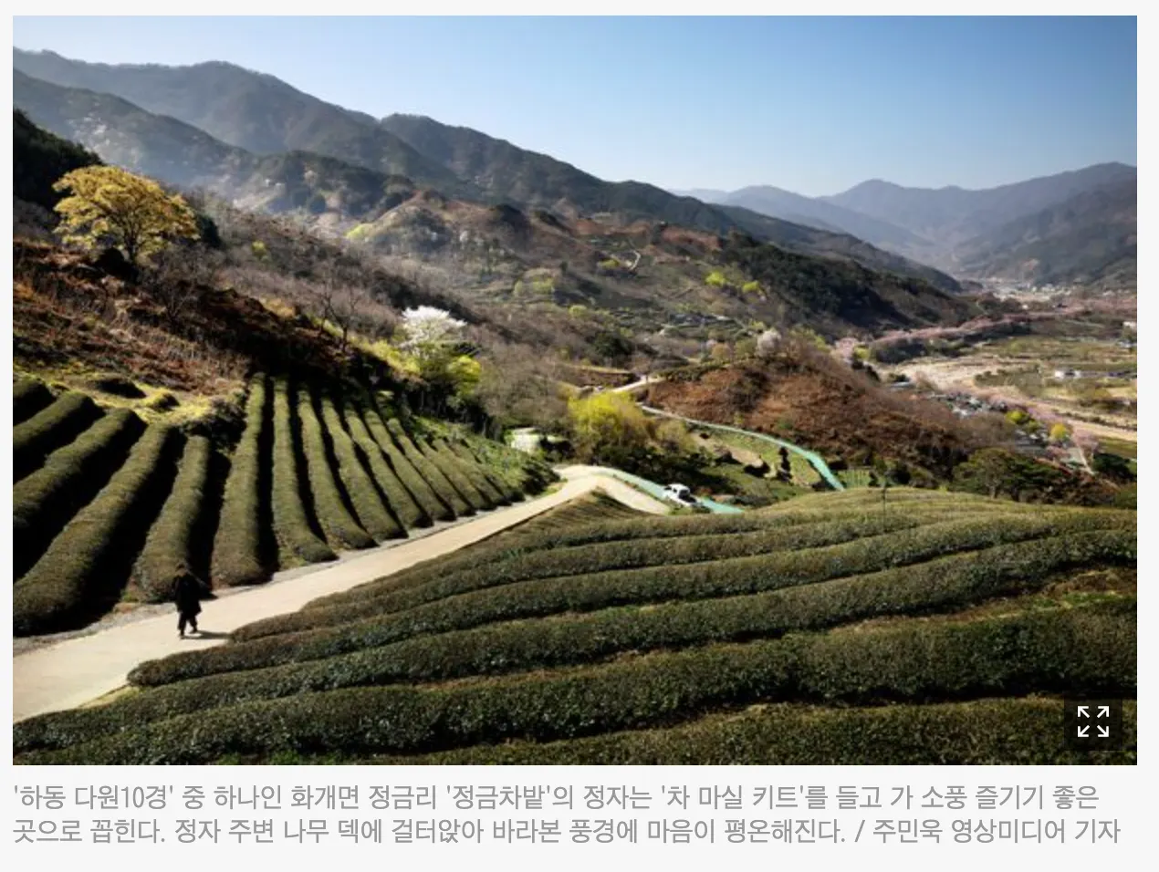 화개, 악양 등 제다원(製茶園· 차나무 잎으로 음료를 만드는 곳)이 모인 곳은 때를 기다렸다는 듯 차밭 여행객들이 발걸음하고 있다. 고즈넉한 다원 툇마루에 가부좌 틀고 앉아 차담을 나누고, 다도 체험 키트가 담긴 바구니나 쟁반을 들고 차밭에 들어가 소풍을 즐긴다. ‘하동 다원 도장 깨기’도 유행하고 있다. 드넓게 펼쳐진 차밭을 마주하고 ‘밭멍’을 때리기도 좋은 계절, 하동으로 떠났다. 오는 5월 4~8일 화개와 악양면 일대에선 ‘하동 야생차 문화 축제’도 열린다.