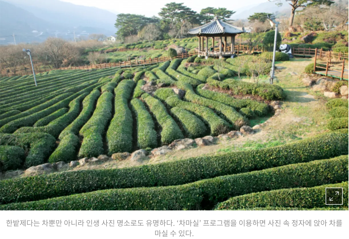 놀루와의 ‘차마실’을 이용하면 차 재배 농가의 특별한 대접을 받을 수 있다. 놀루와가 5개 농가와 운영 중인 프로그램 ‘차마실’은 다도용 피크닉 세트를 대여해주고 차 밭을 걷다가 차를 마실 수 있도록 한 프로그램이다. 단체 참가자들에게는 농가 주인들이 직접 다과상을 차려 내놓으며 차 생산 과정과 제다법에 대한 이야기를 들려준다. 정금정에서는 참가자들을 위한 가야금 연주와 클래식 음악회도 열린다. 다른 참가자들과 멀찍이 떨어져 주변 풍경에만 집중하며 차를 음미해도 좋다.