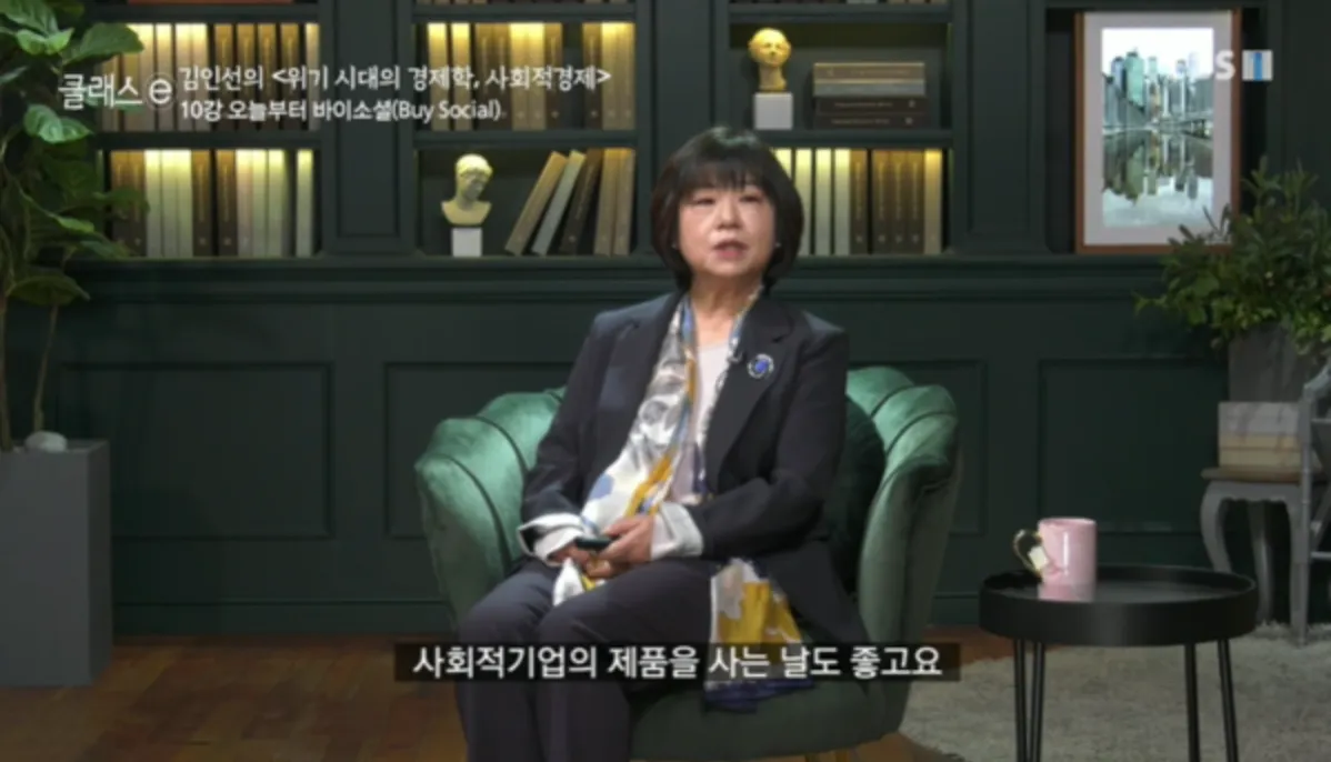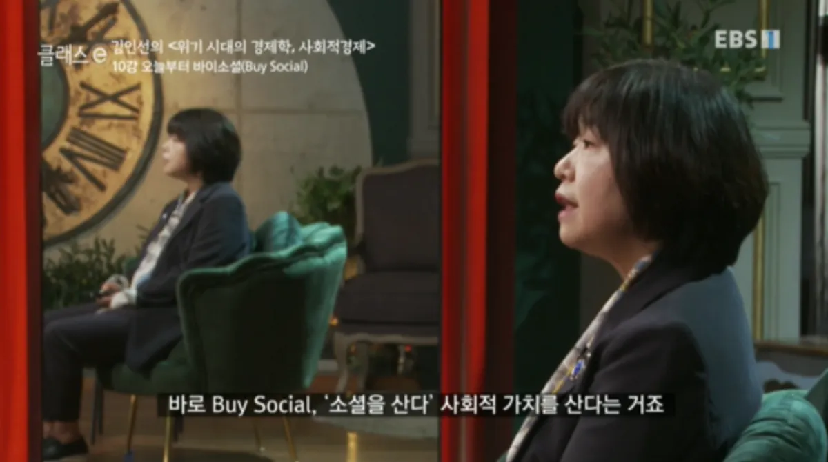 27일 방송된 EBS 'CLASS e'에서는 김인선 한국사회적기업진흥원 원장이 '오늘부터 바이소셜'을 주제로 열 번째 강연을 펼쳤다. 바이소셜(Buy Social)은 사회적기업 제품을 구매함으로써 사회문제 해결에 기여하는 소비행위를 일컫는다. 김 원장은 "이제 소비자들은 제품을 생산한 기업이 '어떤 가치를 가진 곳인지'에 관심을 갖기 시작했다"고 말했다.