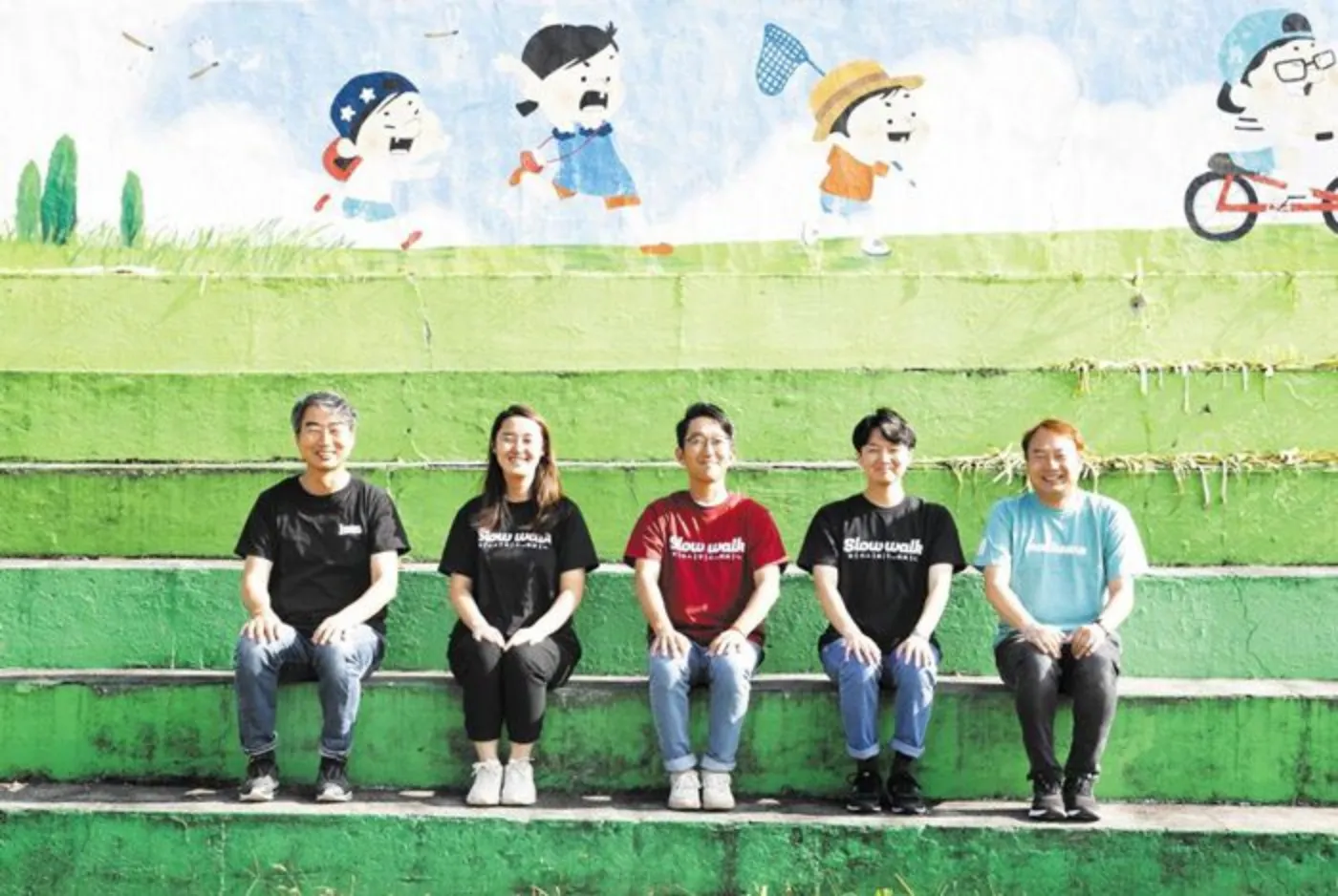 예비 사회적기업 ‘놀루와’ 직원들. 놀루와는 하동 토박이인 조문환 대표와 서울·경남에서 온 직원들로 구성됐다. 조 대표는 “하동에서 나고 자라 속속들이 알고 있는 지역의 아름다운 모습에 젊은 직원들의 아이디어가 더해져 훌륭한 기획이 계속 나오고 있다”고 자랑했다. 왼쪽부터 조문환 대표, 양지영 PD, 조준형 PD, 이대은 PD, 오동수 실장. /하동=최병준 C영상미디어 객원기자