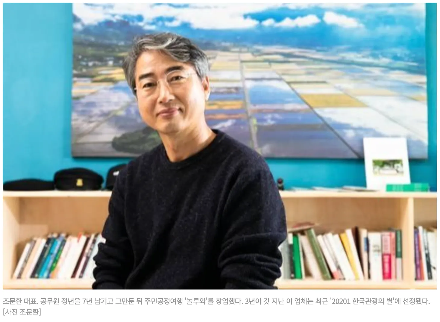 [프롤로그] 정석 서울시립대 도시공학과 교수는 지난 2020년 경남 하동군의 ‘섬진강 달마중’에 참여한 뒤 “여기서 꼭 한 달을 살아봐야겠다”고 결심하고 ‘지방 한 달 살이’에 나섰습니다. 이 여행 프로그램을 기획한 ‘놀루와’는 조문환 대표가 공무원 정년 7년을 남기고 퇴직해 창업한 사회적 기업입니다. 최근 문화체육관광부가 선정하는 ‘2021 한국관광의 별’에도 올랐죠. “부담스럽다”며 인터뷰를 고사하던 조 대표가 정 교수의 설득 끝에 속엣에 나섰습니다.