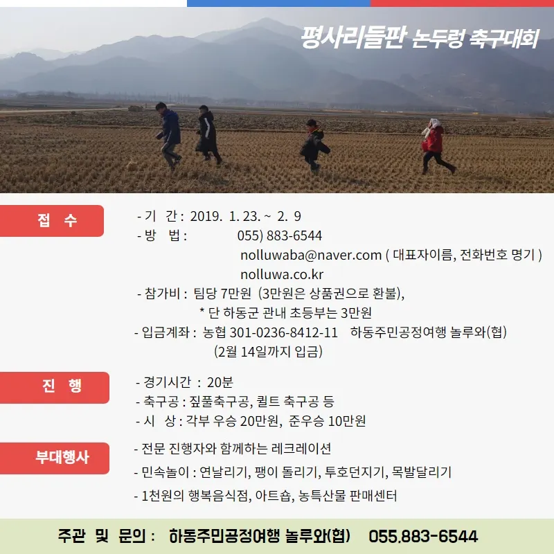 아무도 찾지 않는 겨울의 농촌 "평사리들판 논두렁 축구대회" 로 그 곳을 뜨겁게 달구고 있습니다
